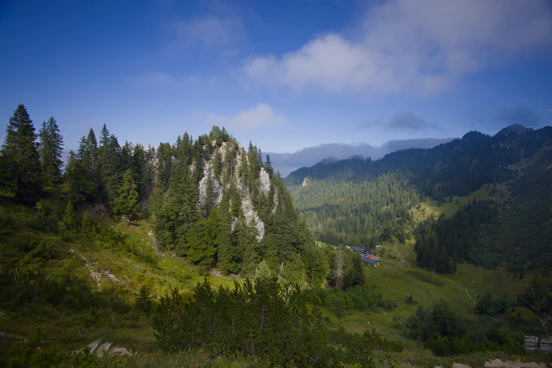 Nestled in the Bavarian Prealps, the Benediktenwand is a 1,800 m high mountain ridge. It is known for its picturesque landscape with rugged rock formations and cliffs rising from green mountain meadows and coniferous bushes.